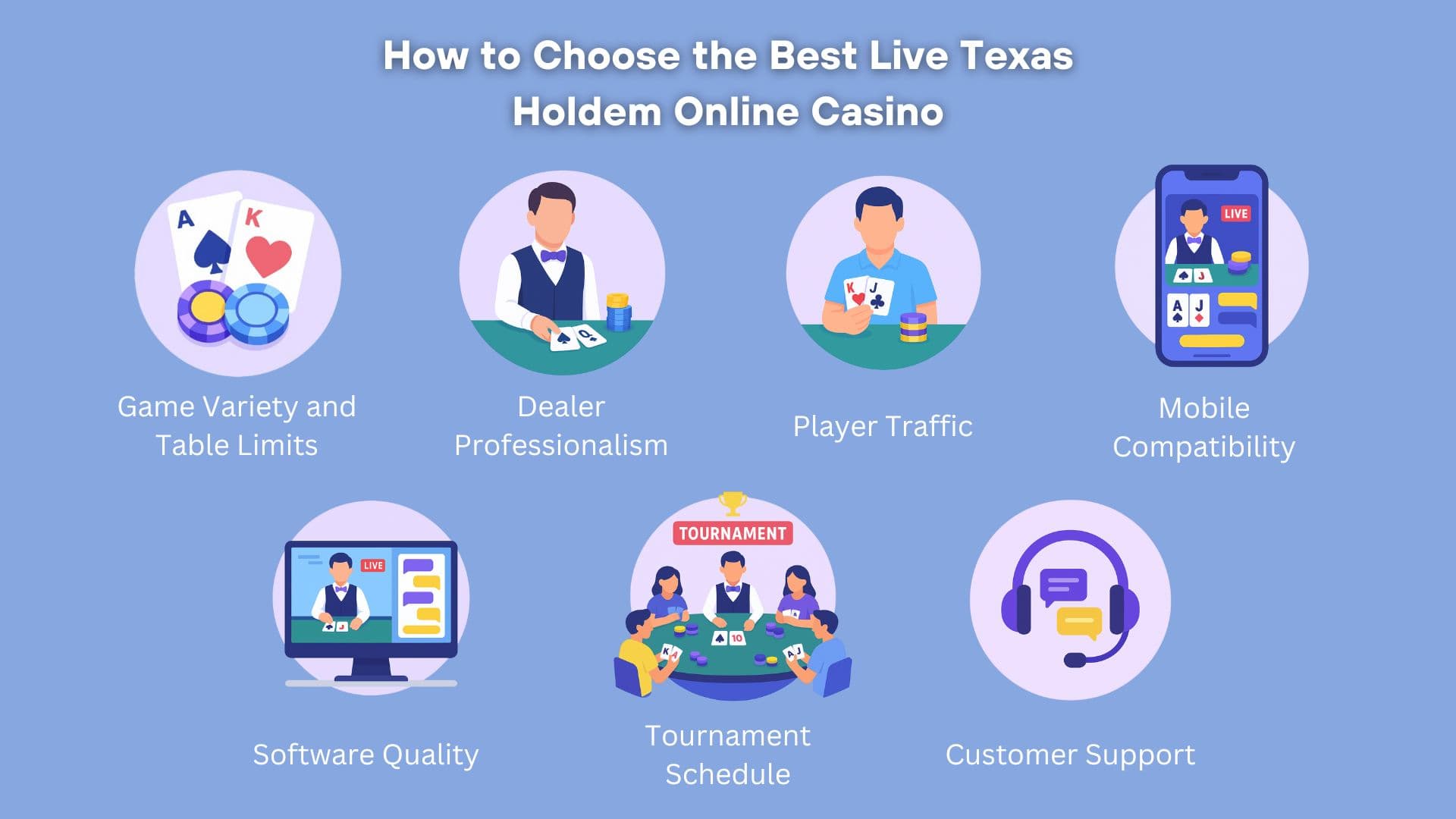 - Mobile Compatibility: If you enjoy playing on the go, verify that the casino offers a robust mobile experience for live Texas Holdem, accessible on your smartphone or tablet.